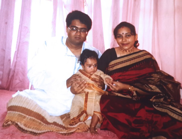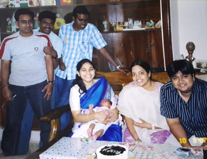 Raji always made sure that he could accompany me for the check-ups. He never let me out of home alone and took pains to bring home all the grocery required as and when even after a hectic day at office. We didn’t have Bigbasket back in those days. He had trouble picking up raspy as he had never handled a baby before but soon he learned and carried the little devil in his arms as we walked to the pediatrician’s chamber.