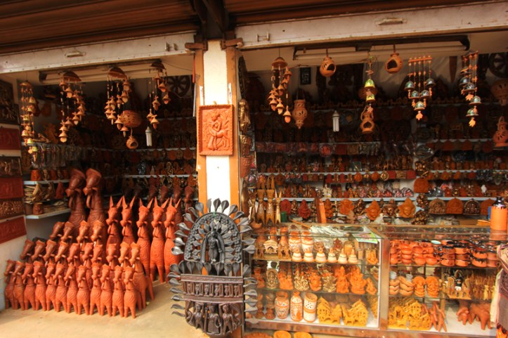 The road from the temple to the guest house had shops all along; apart from terracotta the shops also had “dokra” crafts; there were the famous “baluchori” and “bishnupuri” sarees, some woodcraft and the usual tea stalls and sweet shops.