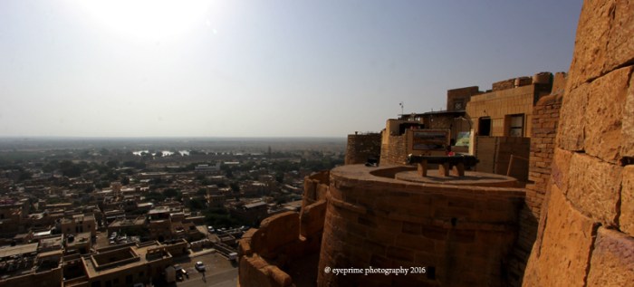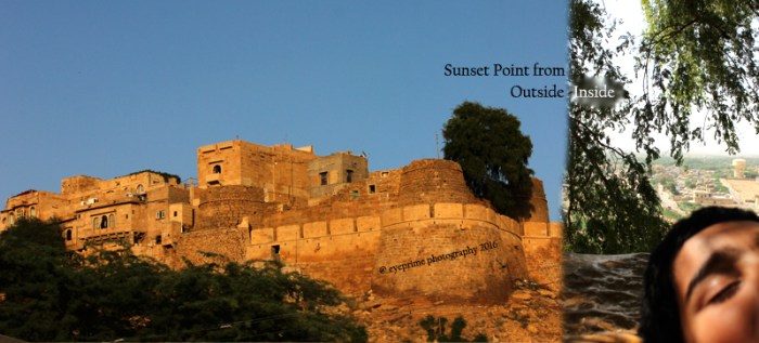 The Jain temples were closed for public at the time and we went past it. At the end of the road is the sunset point. A lone tree stands there the wall is broken and a little deity awaits flowers and kumkum (a red pigment made from turmeric) from the residents. The vast stretch of land comprising of the expanded city of Jaisalmer and the Thar Desert beyond is a site to behold from this vantage point.