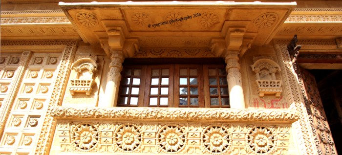 The houses on either sides of the lanes are made of the same yellow sandstone which changes colour from a tawny lion in the morning to a honey lemon at dusk as that of the fort walls.By character they are narrow and multi-storied and have common walls with the adjoining house. A lot of them have been converted to hotels and eateries. Some of the houses are being demolished and rebuilt to suit the needs of the tourists.