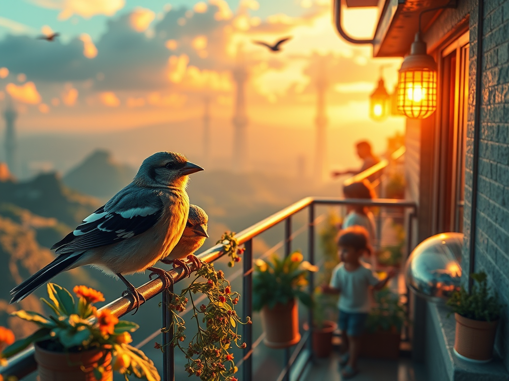 Sparrows in a balcony in a box